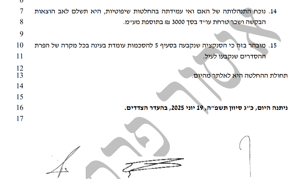 אף במקרה של פרידה או גירושין, האחריות ההורית נותרת משותפת, אלא אם נקבע אחרת בצו שיפוטי.